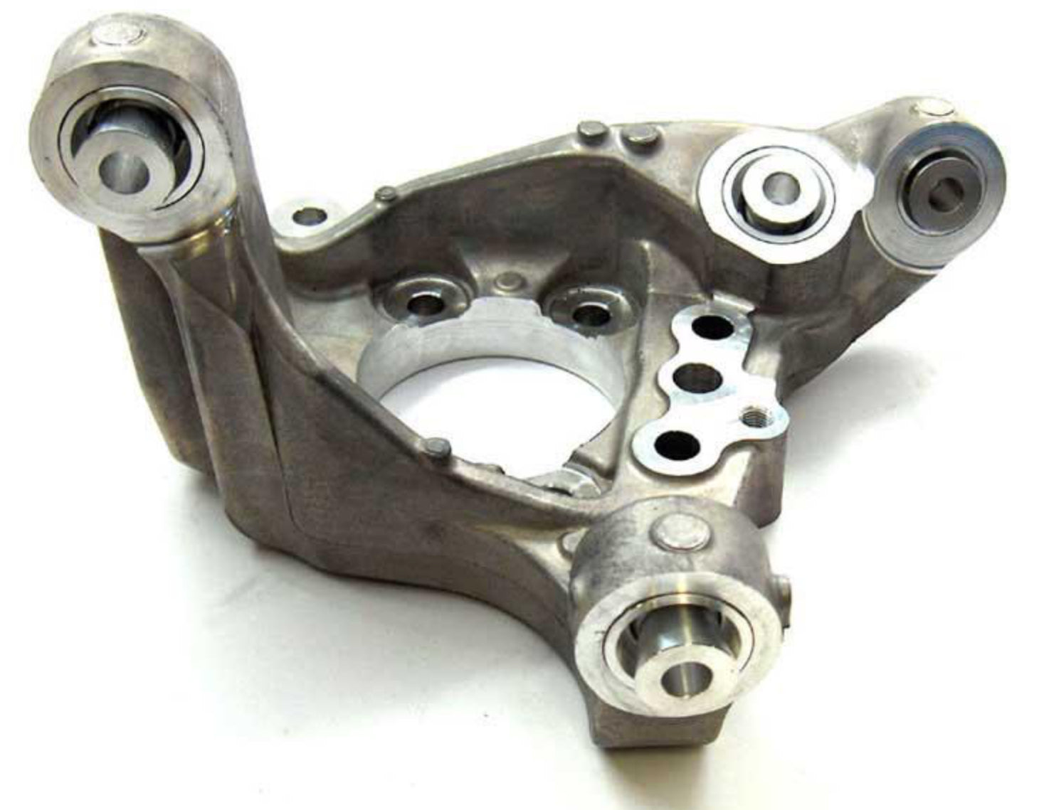 350Z Rear Knuckle Monoball Bushings (RKB) replace the stock mushy rubber bushings with low-friction articulating spherical bearings, eliminating bushing flex and reducing bind/friction. This maintains optimum suspension geometry under load to improve handling and feedback.