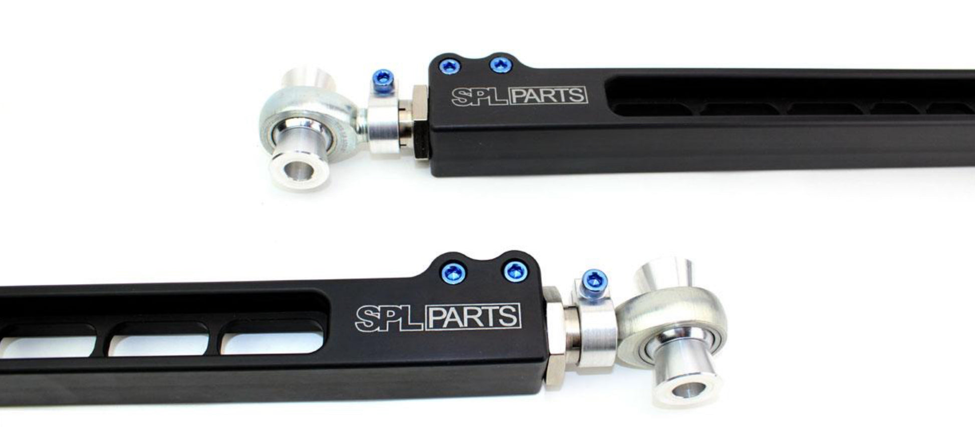 For those who have converted to "true" coilovers in the rear suspension (rear spring relocated over shock) and no longer need the mid link to hold the rear springs, our SPL Parts TITANIUM Series 350Z/G35 Rear Toe Links (RTA) replace the stock mid links to provide a wide range of toe adjustment, which is necessary for lowered cars or for performance alignments. No more jam nuts! Faster, more precise, easier adjustment!