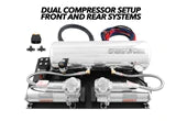 • Includes Air Pistons, 500 Series Coilovers, Swift Springs, air tank, air pressure gauge, compressor, and all necessary lines, valves, and fittings.