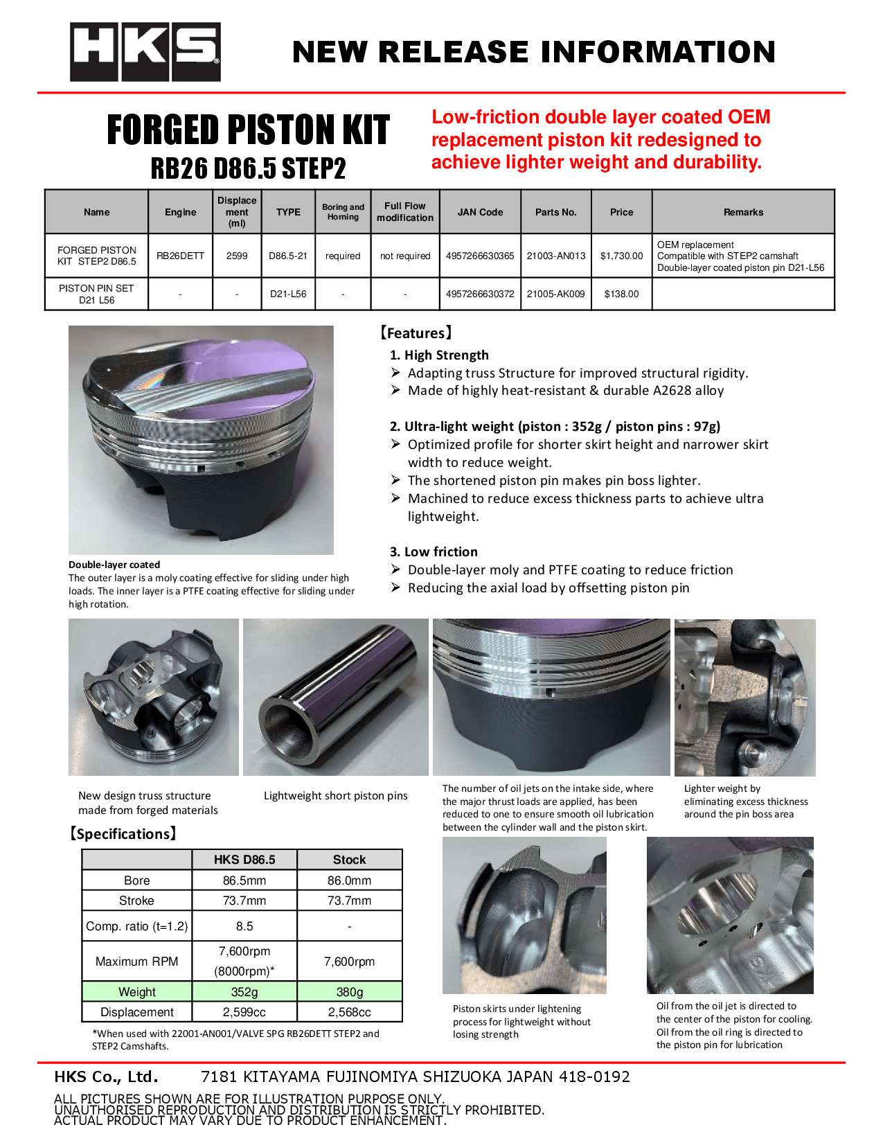 HKS Piston Pin And Ring Engine Series (Nissan skyline GT-R)