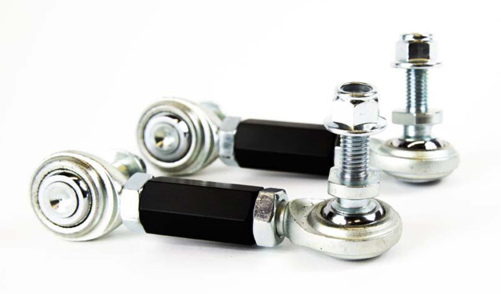 Our Endlinks are also length adjustable to eliminate preload on the sway bars, which can result from uneven settling of springs or uneven suspension heights from corner weighting. Black Anodized 6061 Aluminum Turnbuckles work in conjunction with the left and right hand threaded rod ends for simple and precise adjustment.