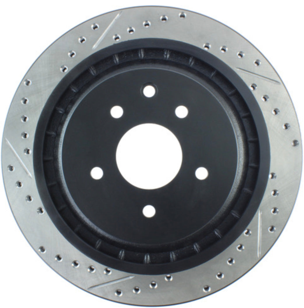 StopTech Drilled and Slotted Sport Rotors are 1-piece direct replacement brake discs for factory brake systems and stock calipers that look great behind your wheels
