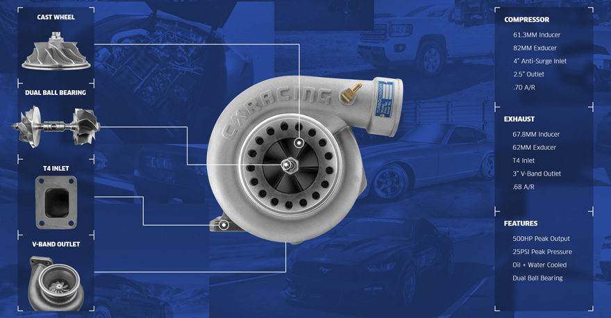 CXRACING'S X-SERIES TURBOS ARE BUILT, TESTED IN THE US WITH HIGH QUALITY STANDARDS, OFFER EXCELLENT PERFORMANCE GAINS FOR YOUR APPLICATIONS.
