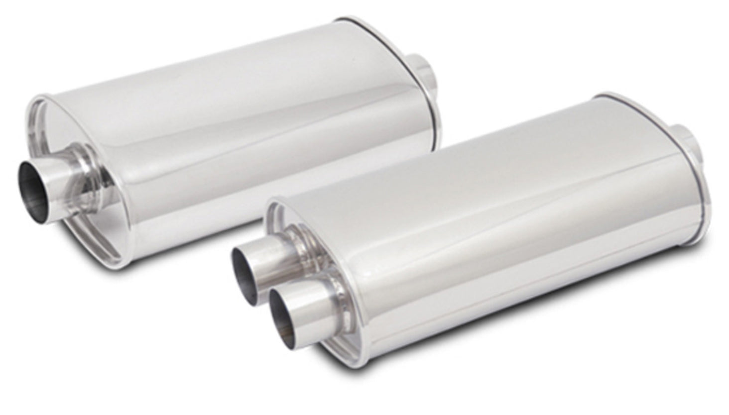 Vibrant Performance StreetPower Universal Mufflers offer a perfect balance of providing unrestricted exhaust flow thanks to Vibrant's signature "True Straight Through" while effectively controlling exhaust tone and drone due to the dense, multi-layer sound suppression materials packed into each of these mufflers. All StreetPower Universal Mufflers feature PREMIUM 304 Stainless Steel construction, polished to a beautiful mirror finish.